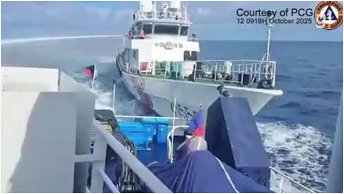 A Guarda Costeira filipina afirmou que três embarcações do país estavam ancoradas perto da Ilha Thitu como parte de um programa do governo para proteger pescadores locais, quando navios chineses teriam se aproximado e usado canhões de água para intimidá-los.