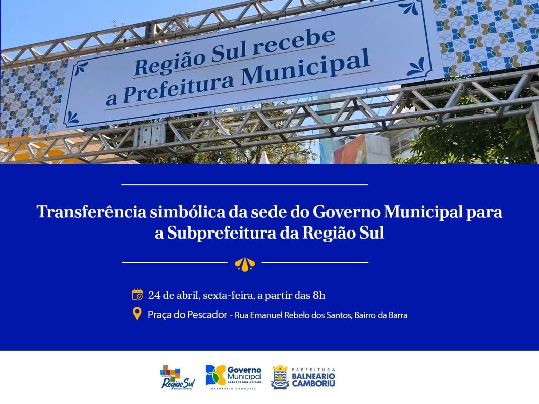 Acontece amanhã, sexta-feira (24), a transferência simbólica da sede administrativa da Prefeitura, para a Subprefeitura da Região Sul, no Bairro da Barra. Com programação das 8h às 17h, na Praça do Pescador – Rua Emanuel Rebelo dos Santos, s/n – quando a comunidade vai poder aproveitar dos diversos serviços e atividades oferecidos gratuitamente ao longo do dia.