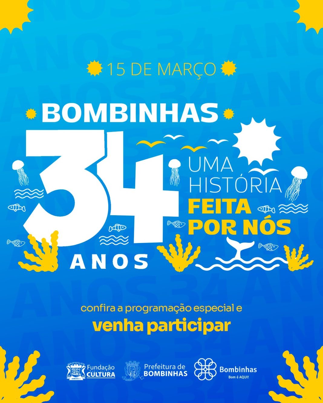 Bombinhas completa 34 anos de emancipação político-administrativa no dia 15 de março e celebra a data com uma programação especial organizada pela Prefeitura, por meio das secretarias e fundações municipais, ao longo de todo o mês. Com o tema “Uma história feita por nós!”, as ações foram pensadas para envolver moradores e visitantes, valorizando a identidade local, o cuidado com as pessoas e o desenvolvimento sustentável do município.