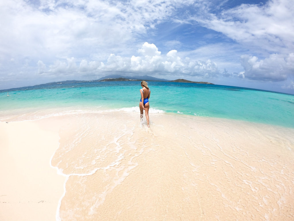 A ilha escolhida foi Icacos, que fica à 40min de catamarã de San Juan, Porto Rico. A ilha não tem estrutura alguma, simplesmente aquele sonho de areias brancas, coqueiros, muito verde e águas cristalinas e quentes do Caribe.
