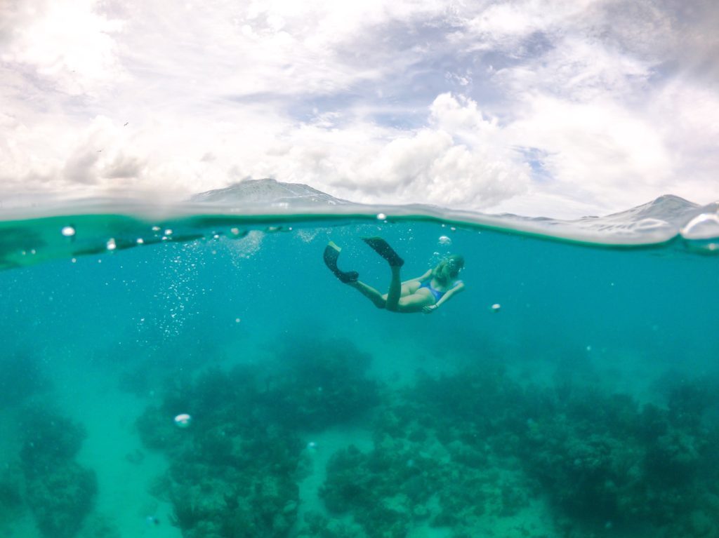 Há corais em volta de toda a ilha, com diversos peixes e dizem que nos dias bons, várias tartarugas aparecem por ali, infelizmente essas nós não vimos.