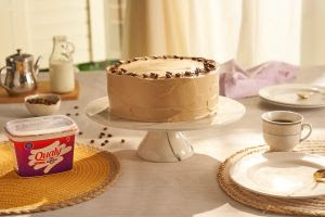 - Continue batendo e comece a colocar a Qualy 0 Lactose amolecida aos poucos, batendo bem a cada adição. Por fim, adicione a pasta de café feita anteriormente e misture bem. Reserve.