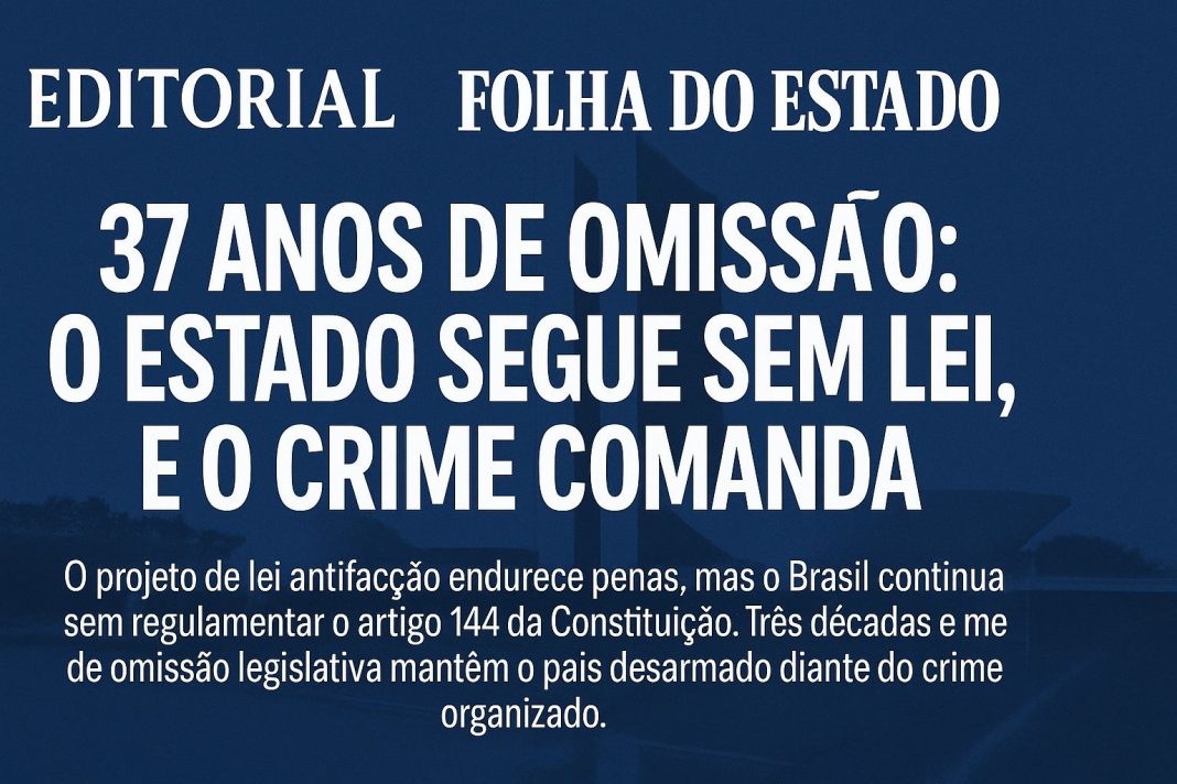 São 37 anos de omissão legislativa, de sucessivos governos e congressos que se sentaram sobre o texto constitucional e negligenciaram a criação de uma política de segurança de Estado, substituindo-a por leis emergenciais, improvisadas e de efeito midiático.