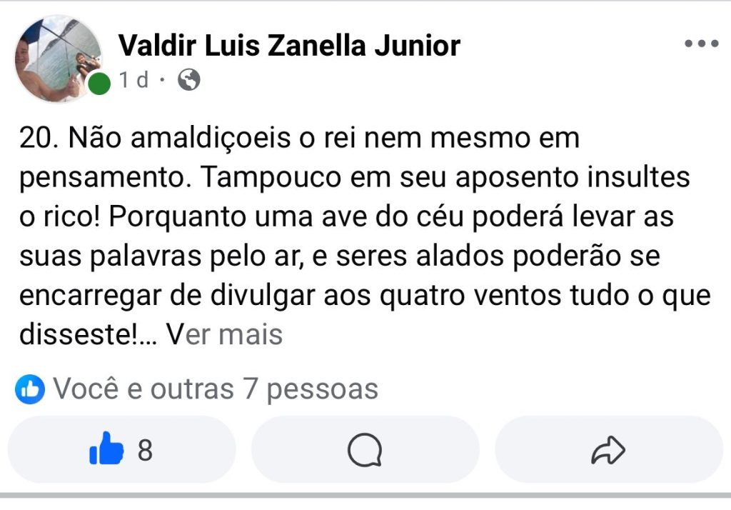 Uma publicação recente do advogado Valdir Zanella em redes sociais resgatou um trecho de Eclesiastes 10:20 “uma ave do céu poderá levar as suas palavras” — e trouxe à superfície uma inquietação contemporânea: até que ponto ainda existe, de fato, comunicação privada?