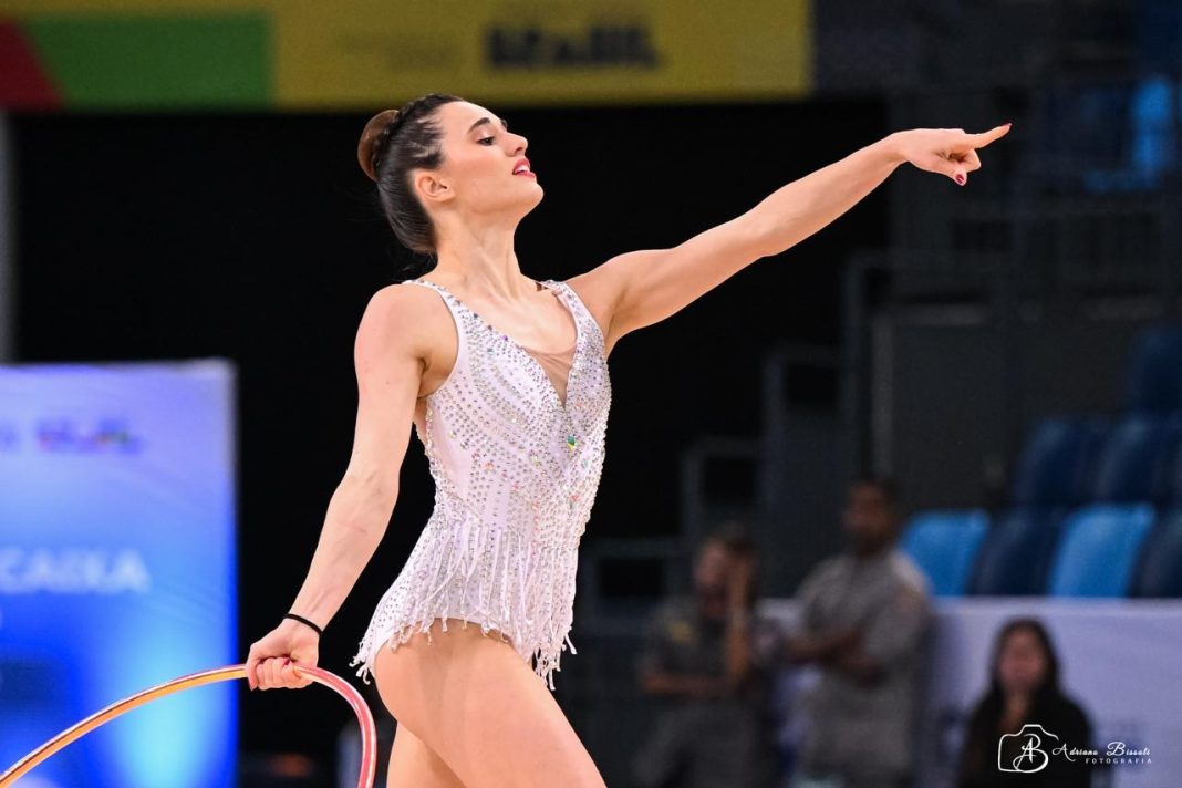 Entre as coreografias preparadas para a competição, um dos destaques é a série com arco, apresentada ao som de “Writing’s on the Wall”, de Sam Smith, trilha do filme 007 Contra Spectre, vencedora do Oscar em 2016. A escolha reforça a expressividade e a construção artística da atleta em quadra.