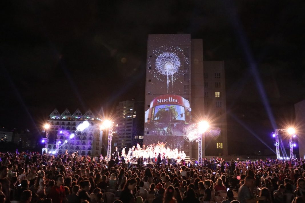 Em noite de espetáculos com músicas natalinas e emoção, o esperado Papai Noel chegou direto do polo Norte para fazer a alegria das crianças e adultos do Natal do Shopping Mueller. O bom velhinho estava previsto para chegar em trenó, mas as renas sumiram antes da sua chegada, conforme ele mesmo contou para o público por meio de uma live. Mas, com o pedido insistente das crianças, surpreendeu o público e chegou em uma plataforma elevatória. O evento realizado na terça-feira (19), lotou o quarto piso do estacionamento do empreendimento.