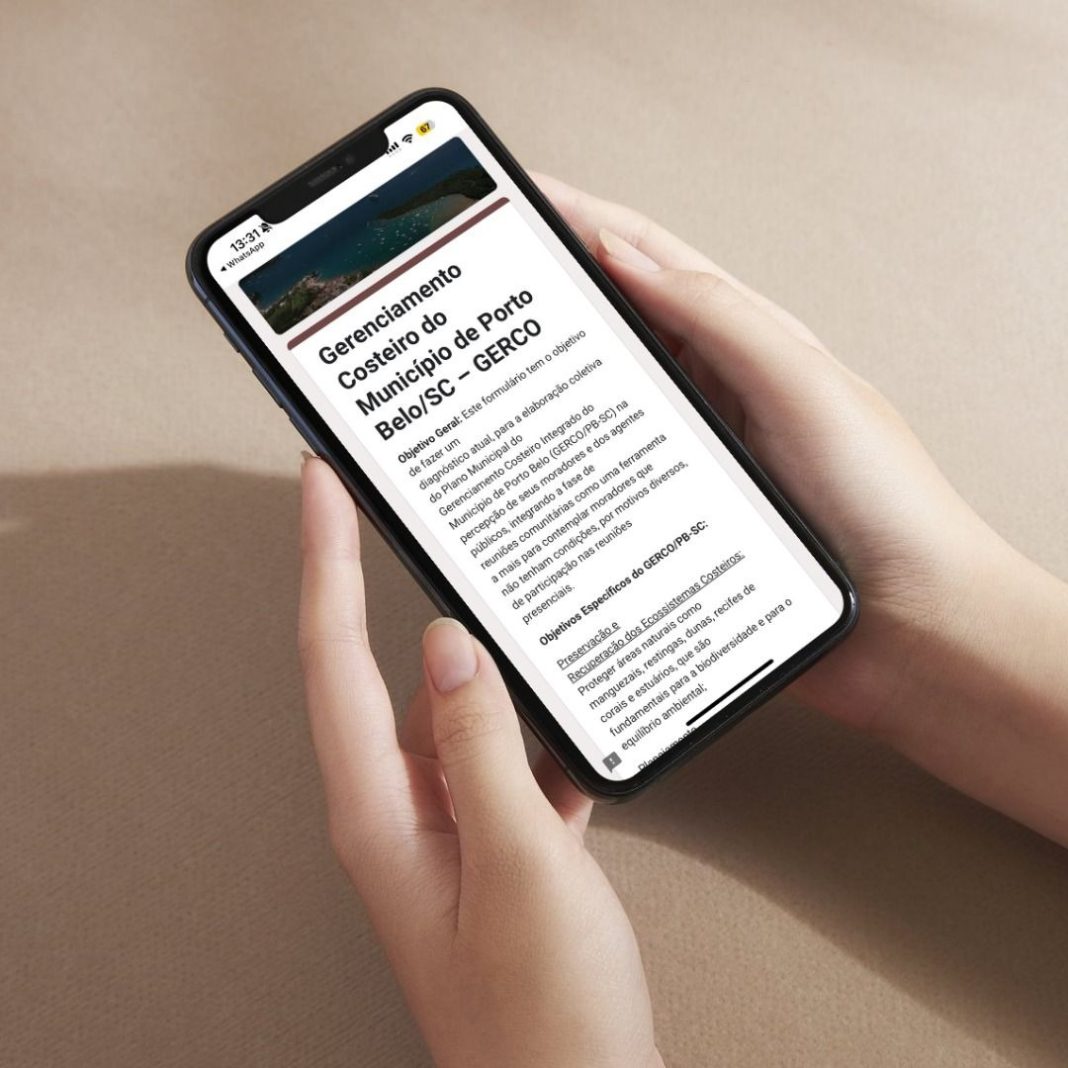Com o objetivo de obter um diagnóstico participativo, foi disponibilizado um formulário online, no qual a população pode expressar sua opinião e contribuir para a elaboração do plano. O link para o questionário está disponível no site do Governo de Porto Belo, na aba “Município”, seção “Projeto Orla”, o formulário pode ser encontrado ao final da página, ou por meio do link: https://docs.google.com/forms/d/e/1FAIpQLSdNmTanWo4MIeWKoTeD99_nyUJ-sOcFBeMyc-ljSkkNwd7DQA/viewform.