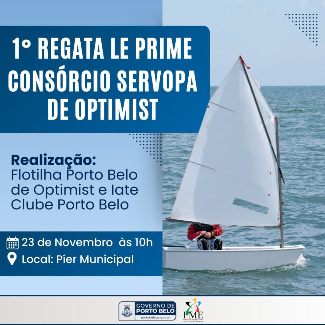 Porto Belo será palco da 1ª Regata Le Prime/Consórcio Servopa de Optimist, que acontece no próximo sábado (23), das 10h às 17h. O evento terá concentração no Píer Turístico de Porto Belo e as competições ocorrerão na Enseada Encantada.
