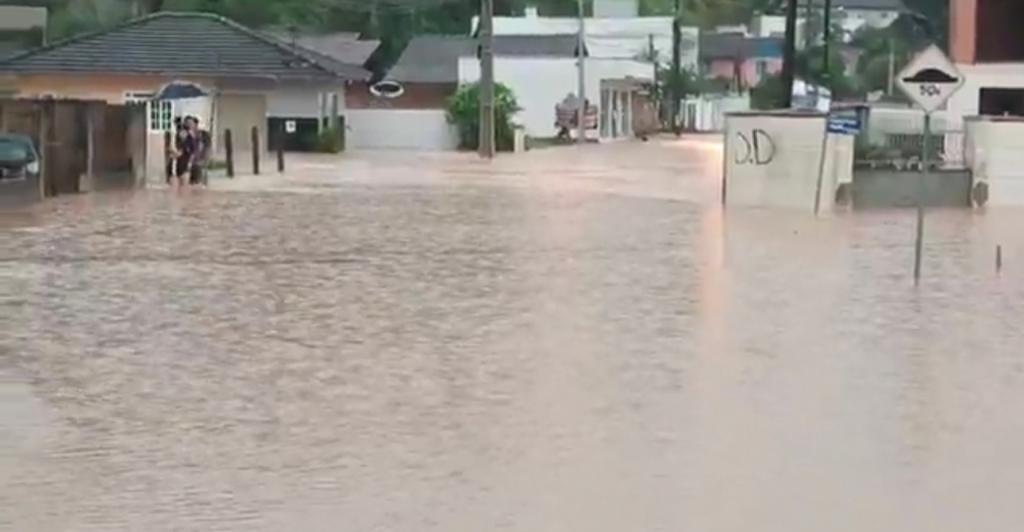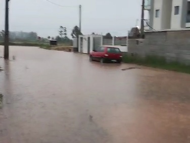 O rápido aumento do nível da água já causou alagamentos em frente a alguns prédios. A rua Nova Trento, situada no bairro Joaia, em Tijucas, enfrenta mais uma vez sérios problemas de alagamento devido às intensas chuvas que atingem a região. Moradores locais relatam que a água está fluindo da rua da Formiga, que serve como um canal de escoamento durante as chuvas. O rápido aumento do nível da água já causou alagamentos em frente a alguns prédios, invadindo terrenos e se espalhando pela área. Infelizmente, os moradores desta localidade têm enfrentado essa situação recorrente sempre que ocorrem períodos de chuvas intensas.